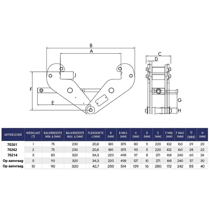 Technische Daten: WLL (kg): 3000 kgMaximale Breite (mm): 320 mmMindestbreite (mm): 80 mm