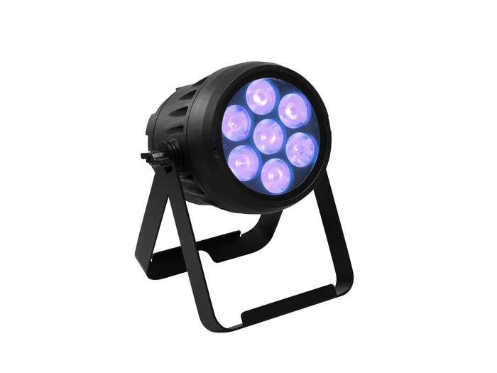 Technische Daten:Stromversorgung:100-240 V AC, 50/60 HzGesamtanschlusswert:75 WSchutzart:IP65Schutzklasse:SK IStromanschluss:Stromeinspeisung über IP T-Con (M) Einbauversion Stromanschlusskabel mit SchutzkontaktsteckerStromausgang:IP T-Con (W) EinbauversionLampenart:LED-LampeLED-Typ:7 x 10 W high-power 4in1 QCL RGBL (homogene Farbmischung)Blitzrate:1 – 23 HzDMX-Kanäle:3; 4; 6; 8; 11DMX-Eingang:3-pol XLR (M) Einbauversion IPDMX-Ausgang:3-pol XLR (W) Einbauversion IPKühlung:Passive KonvektionskühlungAnsteuerung:IR-Fernbedienung; Stand-alone; DMX; Master/Slave Funktion; Musiksteuerung über MikrofonVorprogrammiert bei:Light Captain; ColorchiefProjektion:FlimmerfreiAbstrahlwinkel:10°Abstrahlwinkel (1/2 Peak):10°Frostfilter 15°Frostfilter 19°Abstrahlwinkel (1/10 Peak):20°Gehäusefarbe:SchwarzAufnahmesystem:DoppelbügelDisplaytyp:OLED DisplayDiebstahlsicherung:KENSINGTON-LOCKMaße:Länge: 23,4 cmBreite: 28 cmHöhe: 17 cmGewicht:4,25 kgGeräuschklassifizierung:Klasse 0 (keinerlei Geräusche)FernbedienungBatterie:1 x Knopfzelle 3,0 V CR2032 Lithium-Mangan eingebautRechtliche SpezifikationenSpezialprodukt:Nicht zur Raumbeleuchtung in Haushalten vorgesehenVerwendungszweck:Beleuchtung für Show-EffekteVideo: