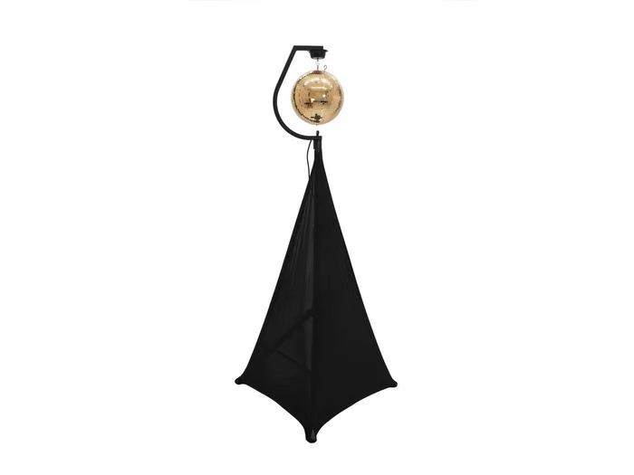 Beschreibung:Goldene Spiegelkugel inkl. Stativhalterung mit Motor, Stativsegel und BoxenhochständerEUROLITE Spiegelkugel 30cm goldSicherheits-Spiegelkugel mit Facetten in gold