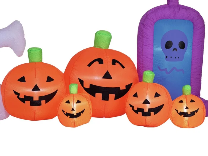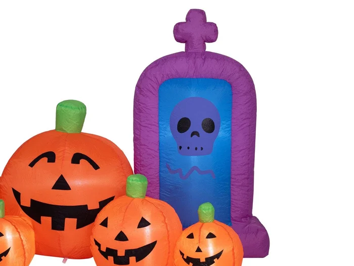 - Selbstaufblasende Halloweenszene, Geist mit Kürbissen und Grabstein als Dekorationsobjekt