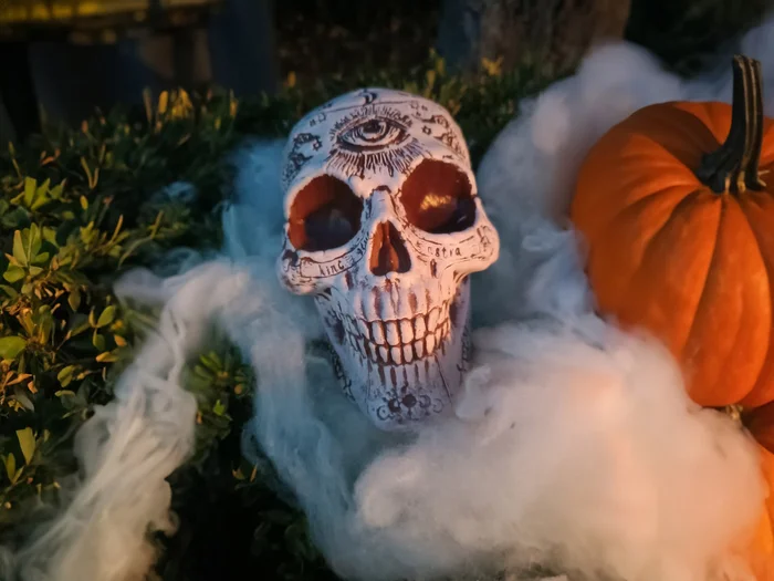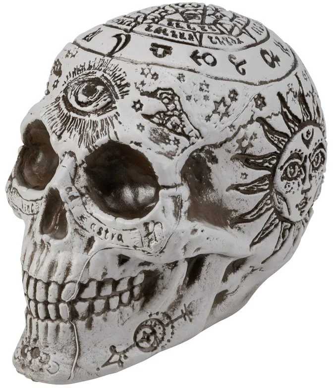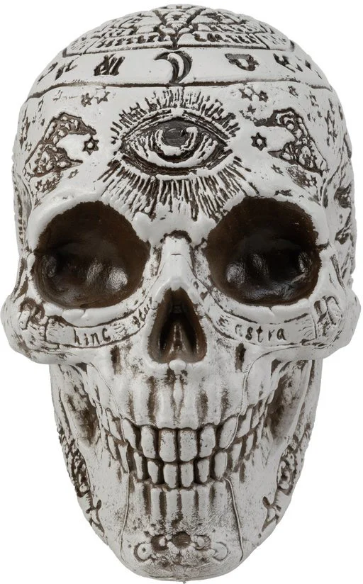 Totenschädel mit mystischen Zeichen und Symbolen als Gruseldekoration