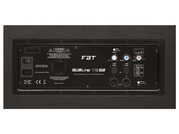 - Neuer Verstärker, entwickelt und hergestellt von FBT, 700 W RMS LF in Klasse D
