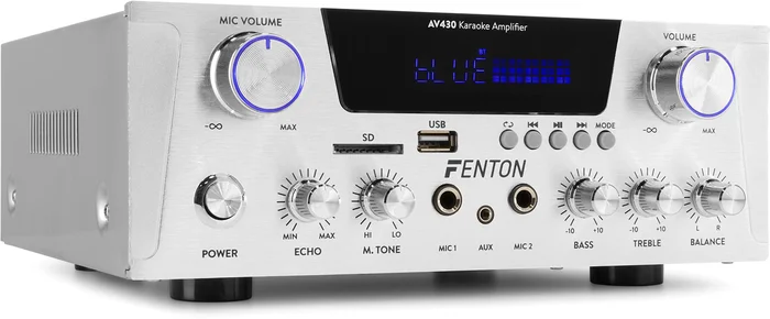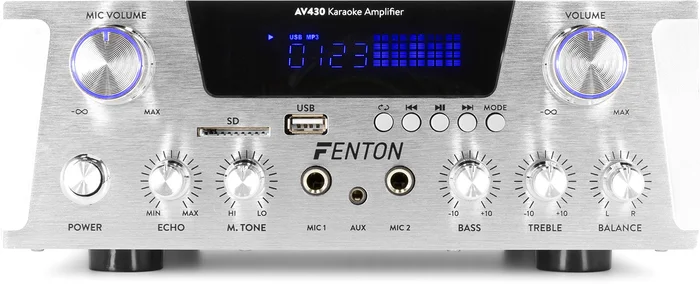 Die AV430-Verstärker sind formschöne Hochleistungsverstärker und haben eine luxuriöse Metallfront aus gebürstetem Edelstahl. Diese kompakten Hi-Fi-Verstärker sind mit einem integrierten USB/SD-Media-Player ausgestattet, mit dem Sie Ihre Lieblings-MP3-Songs direkt von einer USB- oder SD-Karte abspielen können. Dank der kabellosen BT-Streaming-Fähigkeit, der Bass-/Höhen- und Echoregelung und zwei separat steuerbaren Mikrofoneingängen sind diese Verstärker auch perfekt für Anwendungen wie Karaoke und Hintergrundmusik geeignet.