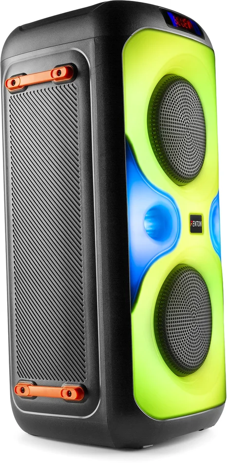 Dreh den Spaß auf! Bringen Sie Ihre Party auf ein neues Level mit dem BoomBox Wireless Party Speaker, der eine spektakuläre, beat-synchrone Lichtshow über die gesamte Front bietet. Dank des eingebauten Akkus, des Mikrofons und der zahlreichen Anschlussmöglichkeiten wie USB, Micro-SD-Karte und einer eingebauten Mikrofonbuchse können Sie ganz einfach zu all Ihren Lieblingssongs mitsingen. Der BoomBox Party Speaker ist tragbar und kann sowohl horizontal als auch vertikal aufgestellt werden, was für zusätzliche Flexibilität sorgt. Es ist auch möglich, zwei BoomBox Party Speaker kabellos miteinander zu verbinden, um einen noch kraftvolleren Stereosound zu erzeugen. Ideal für Home Entertainment, Karaoke, Schulen, Seminare und viele andere Anwendungen.