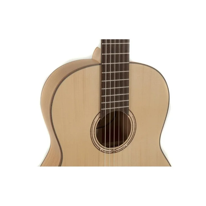 Die GEWA Klassikgitarre Pro Natura Gold 4/4 ist eine vollmassive Gitarre, die in einer atemberaubenden Preisklasse erhältlich ist. Sie verfügt über eine massive europäische Fichtendecke sowie Boden und Zargen aus massivem Ahorn oder Kirsche. Sowohl der Deckenrand als auch der Bodenrand bestehen aus Holz. Alle Gitarren dieser Serie sind mit einer dünnen, umweltverträglichen Seidenmattlackierung versehen.