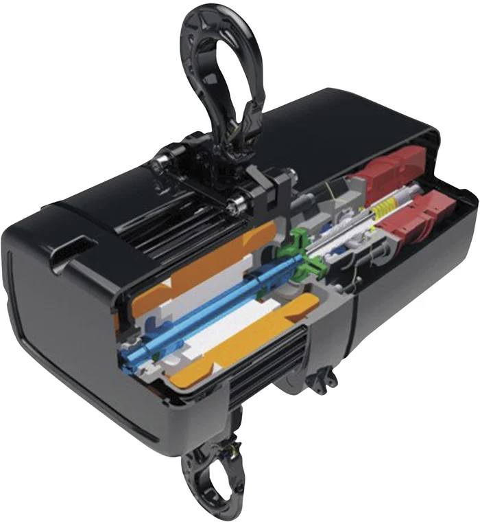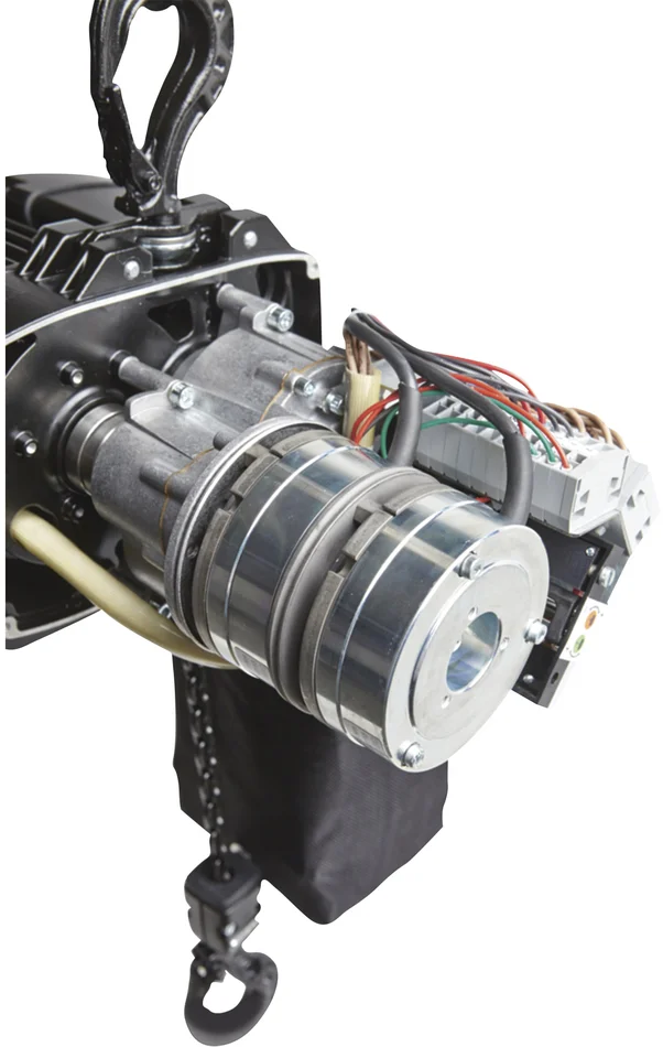 Zwei unabhängige Bremssysteme und ein Sicherheitsfaktor 8:1 ermöglichen es Personen, ohne eine sekundäre Sicherheitsvorrichtung unter der Last zu stehen. Durch die direkte Steuerung können die Kettenzüge problemlos zu Gruppenzügen kombiniert werden. Der Kettenzug entspricht der BGV D8+ als modularer Kettenzug zum Heben von Lasten. Die Tragfähigkeit beträgt 0,5t in einem einzigen eingescherten Kettenzug. Die Kettenzüge sind sowohl für den mobilen als auch für den Außeneinsatz bestens geeignet. Die obere und untere Endposition kann individuell und präzise eingestellt werden. Der optional verriegelbare Lasthaken verhindert, dass die Last versehentlich vom Lasthaken rutscht.