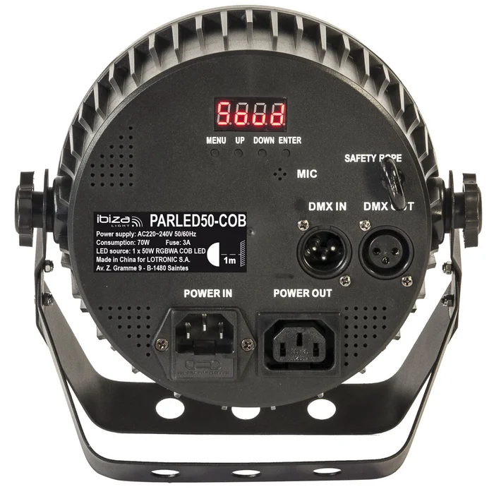 Beschreibung:Der PARLED50-COB ist ein High Power 50W LED Spot mit einem Abstrahlwinkel von 60° und COB-Technologie (Chip-on-Board). Dieses Modell ist ein RGBWA Spot mit Farbmischer-, Dimmer-, Strobe- und DMX-Funktionen.Technische Daten:1x 50W COB LEDLichtspektrum mit COB-TechnologieDMX und Stand-Alone modus9 DMX KanäleMaster/Slave funktionSound-To-Light mit einstellbarer EmpfindlichkeitAutomodus mit einstellbarer GeschwindigkeitVorprogrammierte ShowsDMX Eingang/Ausgang über 3-pin XLRIEC-connector Eingang/AusgangControlpanel mit LED DisplayDoppelbügel dient auch als BodenständerAbstrahlwinkel: 60°Farben: Rot, Grün, Blau, Weiß, AmberStromversorgung: 100-240VAC / 50-60HzStromverbrauch: 70WAbmessungen: 190 x 190 x 150mmGewicht: 1.1kg