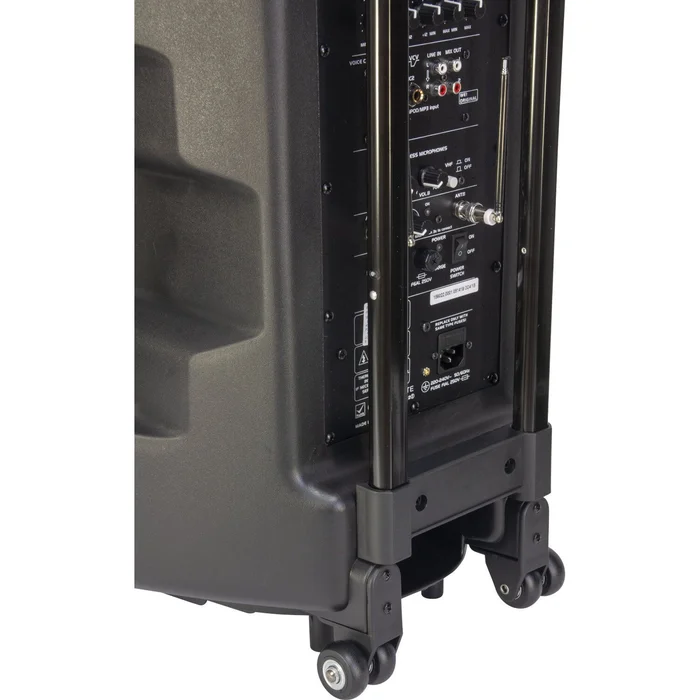 Technische Daten:max. Leistung: 800WRMS Leistung: 400WEmpfindlichkeit: 99dBFrequenzbereich: 35Hz 20kHzVersorgung: 220-240Vcc / 50-60HzBatterie: 12V/7.2AhAbmessungen: 482x442x730mmGewicht: 19,49kg