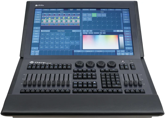 Der Infinity Chimp 300.G2 Controller mit einem integrierten 22“ Touchscreen bietet Ihnen alle nötigen Tools, um in wenigen Minuten eine Lichtshow zu erstellen. Der Chimp 300.G2 bietet Zugriff auf vier Universen mit unlimitierten patchbaren Scheinwerfern. Beim Design des Chimps stand ein einziger Aspekt im Vordergrund: Benutzerfreundlichkeit. Er ist gleichermaßen für Anfänger wie für fortgeschrittene Anwender geeignet.