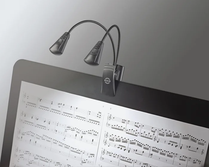 Beschreibung: Multifunktionelle LED-Leuchte für den mobilen Einsatz. Dank der 2 flexiblen Schwanenhälse wird der Lichtkegel der jeweiligen LED individuell positioniert. Die LEDs sind einzeln schaltbar und bestechen durch eine extrem lange Lebensdauer von bis zu 100.000 Stunden. Der praktische Clip (bis 25 mm) ermöglicht die Befestigung an Notenpulten, Tischplatten etc. Eine Verwendung als Standleuchte ist ebenfalls möglich. Für den mobilen Einsatz können die Schwanenhälse kompakt eingeklappt werden. Im Lieferumfang enthalten sind 3 Batterien (1,5 V AAA) mit einer Leuchtdauer bis zu 20 Stunden.