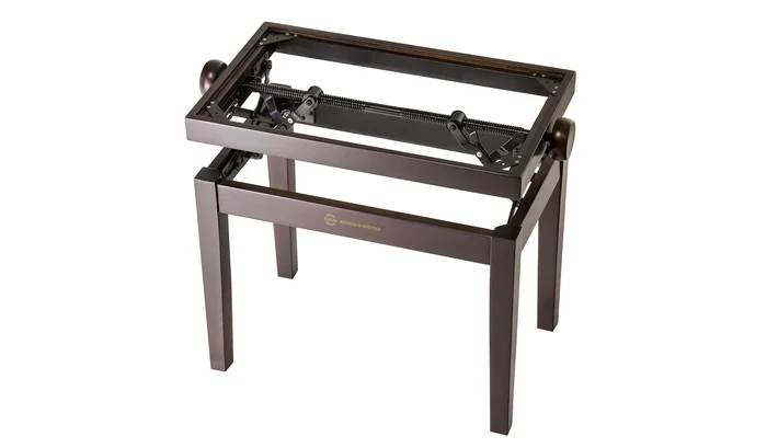 Klavierbank Unterteil, solides europäisches Buchenholz, vierfach lackiert. Stabile Beine mit rutschfesten Parkettschonern. Leichtgängige, präzise Spindelmechanik mit Doppelscherensystem zur Verstellung der Sitzhöhe. Die Bank wird platzsparend geliefert und ist mit wenigen Handgriffen aufgebaut.