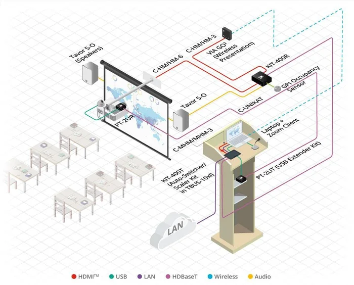 C−UNIKAT ist ein vereinigtes screeningKAT 6A Kabel, das für alle aktuellen Signalarten geeignet ist. Über vier einzeln geschirmte Twisted Pairs leitet dieses U/FTP KAT 6a Kabel Kramers DGKat™ Technologie, 4K HDBaseT™ Technologie oder LAN−Signale und sichert dabei optmale Qualität.