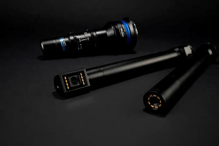 Das LAOWA 24 mm T14 2X Periprobe bringt ganz neue Shooting-Möglichkeiten auf den Markt. Schon mit dem Macro Probe entstanden einzigartige Aufnahmen aus der Insektenperspektive, die mit anderen Objektiven niemals möglich wären. Es zählt schon längst nicht mehr als Geheimtipp in der Fachwelt, sondern gehört mittlerweile zum Stammsortiment von weltweit agierenden und renommierten Cine-Verleihern. Die außergewöhnliche Gehäuseform und die professionellen Features, wie u.a. ein wasserdichtes Frontteil, bieten nie dagewesene kreative Möglichkeiten für Filmer und Fotografen. All diese Eigenschaften stellt das neue Periprobe nun noch mal auf eine neue Stufe. Filmen und Fotografieren Sie auch einfach um die Ecke – und zwar egal in welche Richtung. Das Periprobe wird als Set mit auswechselbaren Tuben geliefert. Ein Tubus kann wie bisher einfach geradeaus fotografieren, der andere 90° „um die Ecke“. Mit einem Bildwinkel von 85° und einem sehr geringen Mindestabstand von 2 cm sind auch auf engstem Raum atemberaubende Perspektiven möglich. Mit einer Brennweite von 24 mm ist es für Vollformatkameras ein Weitwinkel-Makroobjektiv mit einem Abbildungsmaßstab von maximal 2:1. Das Periprobe hat eine breitere Perspektive als andere Makro-Teleobjektive und einen größeren Blendenbereich von T14 bis T40. Daher hat es auf kurze Distanz eine größere Schärfentiefe. Der lange und röhrenförmige Objektivtubus, bestehend aus 28 Linsenelementen in 19 Gruppen, ermöglicht viele ungewöhnliche Aufnahmesituationen. Mit dem 40 cm langen und 2 cm dünnen teleskopartigen Tubus können Sie problemlos innerhalb von Modellen, Baumhöhlen oder auch ohne spezielles Gehäuse unter Wasser (bis ca. 20cm tief) fotografieren. Ebenfalls garantiert er einen sicheren Abstand zu den Motiven, was gerade bei Tieraufnahmen wichtig ist. Das eingebaute LED-Licht an der Spitze bietet eine helle Lichtquelle. Als Stromquelle können Sie eine Power Bank oder ein USB-Netzteil verwenden. Mit dem beiliegenden dimmbaren USB-Kabel kann das Licht in 11 Stufen eingestellt werden. Durch den austauschbaren Linsentubus kann man ganz einfach zwischen der 90°-Periskop- und der geraden 0°-Makrosonde wechseln. Also haben Sie zwei Objektive in einem. Außerdem kann das Objektiv um 360° entlang der Längsachse gedreht werden (über Modul 0.8 ansteuerbar), indem der Orientierungsring am Kupplungsmechanismus entriegelt wird. Durch erneutes Verriegeln kann der Bildausschnitt bzw. die Ausrichtung fixiert werden. Weiteres Zubehör kann auch an der Bohrung an der Spitze des Objektivs installiert werden. Das Cine-Objektiv mit stufenlosem Blendenring ist mit genormten Modul 0.8 Zahnringen ausgestattet. Die Fokussierung und Blendeneinstellung erfolgt manuell.