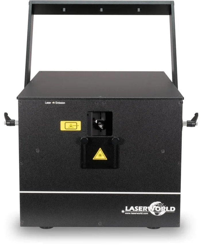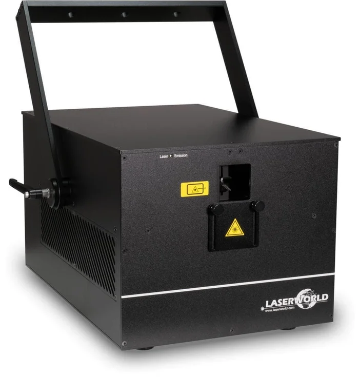 Der Laserworld CS-24.000RGB ShowNET ist ein reines Dioden-, analogmoduliertes, vollfarbiges RGB-Lasersystem mit einer garantierten Ausgangsleistung von 24’000 mW. Die rote Laserquelle hat eine Ausgangsleistung von 5’500 mW / 638 nm, die grüne von 6’500 mW / 520 nm und die königsblaue Laserquelle eine Ausgangsleistung von 12’000 mW / 450 nm. Die Diodenlaserquellen sorgen für leistungsstarke Laserstrahlen. Der Projektor verfügt über gute Strahlspezifikationen mit einem Strahldurchmesser von ca. 6 mm und einer Strahldivergenz von 1,3 mrad. Das Galvo-System hat eine Scangeschwindigkeit von bis zu 30 kpps @ 8°.
