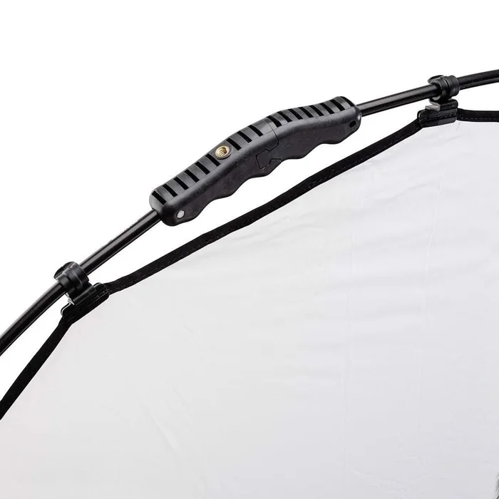 Der HaloCompact Plus besitzt außerdem einen ergonomischen Handgriff, damit sich der Reflektor mühelos und präzise mit nur einer Hand halten und positionieren lässt. Im Griff ist außerdem ein äußerst praktisches ¼-Zoll-Gewinde integriert (zusätzlich gibt es einen Adapter ¼ Zoll auf ¼-Zoll), mit dem sich der Reflektor problemlos an unterschiedlichen Trägersystemen, wie Armen und Lichtstativen befestigen lässt.