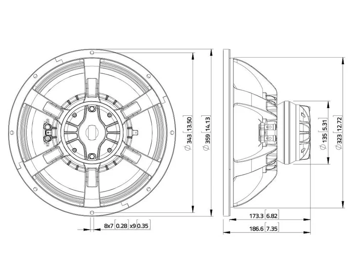 Technische Daten:Belastbarkeit:Programm: 800W LFNominal: 400W AES LFProgramm: 160W HFNominal: 80W AES HFFrequenzbereich:45 – 3500 Hz600 – 18000 HzEmpfindlichkeit:99 dB LF; 105,5 dB HFImpedanz:8 Ohm LF; 8 Ohm HFLautsprecher:13,5″ Tieftöner mit gemeinsam benutzter Neodymmagnet mit 2-fachem DemodulationsringKorbmaterial: Aluminium3″ Schwingspule TieftonDiaphragmamaterial: Titan1,4″ Kompressionstreiber Hochton3″ Schwingspule Kompressionstreiber-HochtonGewicht:5,20 kgVideo: