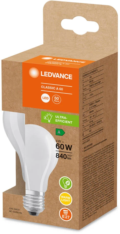 LEDVANCE LED-LAMPEN ENERGIEEFFIZIENZ GLÜHFADEN CLASSIC A 60 4 W/3000 K E27