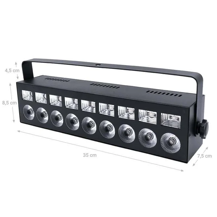 Die Light4Me Batten Mix-Leuchte ist mit 9 leistungsstarken PAR-LEDs ausgestattet, die für eine aktive Bühnenbeleuchtung, die Beleuchtung von Bühnen und Tanzflächen, die Hervorhebung von Elementen der Inneneinrichtung und Architektur sowie für eine vielseitige Lichtdekoration konzipiert sind. Ein verblüffender Lichteffekt wird auch durch ultraviolette LEDs erzeugt, dank derer wir die Fluoreszenz einiger Farben sehen können. Auch die Stroboskop-Funktion, die den Eindruck erweckt, dass das Bild in der Zeit angehalten wird, wurde nicht vergessen, so dass Batten Mix eine ideale Lösung für Disco-Clubs, DJ-Partys und alle Arten von Tanz- und Unterhaltungsveranstaltungen ist.