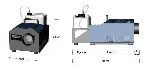 Durch den Einsatz zweier Pumpen ist ein sehr gleichmäßiger Nebelausstoß bei jedem Pumpenwert gewährleistet. Dabei wird der Dauernebelbereich bis 30% Pumpeneinstellung von einer Pumpe gesteuert, der Bereich von 31% bis 100% wird von einer stärkeren Pumpe geregelt.