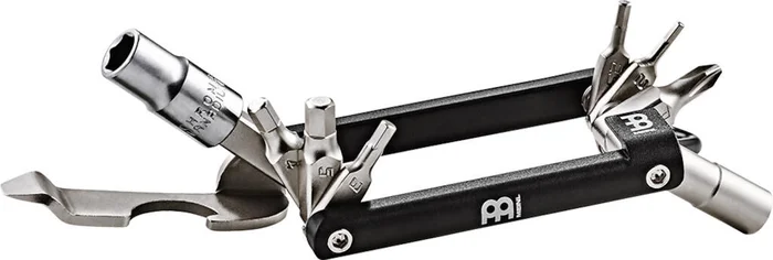 Das Meinl Stick & Brush Drum Tech Multi-Tool verfügt über alle grundlegenden Werkzeuge, welche von Schlagzeugern benötigt werden. Darunter zählt ein Stimmschlüssel, ein Kreuz- sowie Schlitzschraubendreher, Sechskantschlüssel (2, 2.5, 3, 4, 5mm), ein Aufsteckschraubenschlüssel und sogar ein Flaschenöffner. Durch den zusätzlich angebrachten Karabinerhacken kann das Multi-Tool einfach an einer Tasche oder ähnlichem befestigt werden.