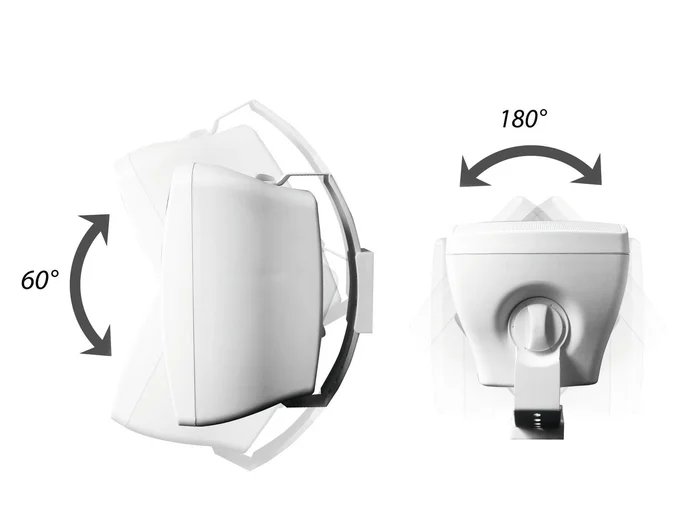 Beschreibung:2 wetterfeste Lautsprecher (IP65) mit Halterung, 6,5″ Woofer, 1″ Tweeter, 50 W RMS