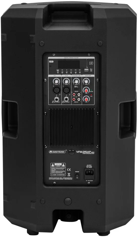 Aktive 2-Wege-Box (15″) mit 150 W RMS für PA- und DJ-Anwendungen mit Audioplayer und Bluetooth