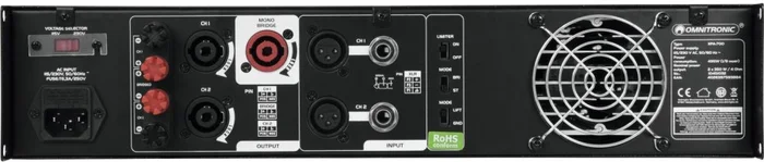 Class AB Stereo-PA-Verstärker mit Limiter, 2 x 350 W RMS (4 Ohm), 2 x 240 W RMS (8 Ohm)