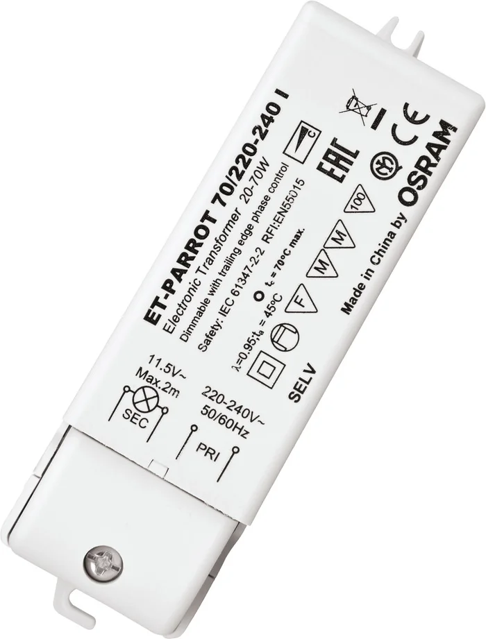 Elektronische Trafos für Halogen-Niedervolt-Lampen. Produkteigenschaften: