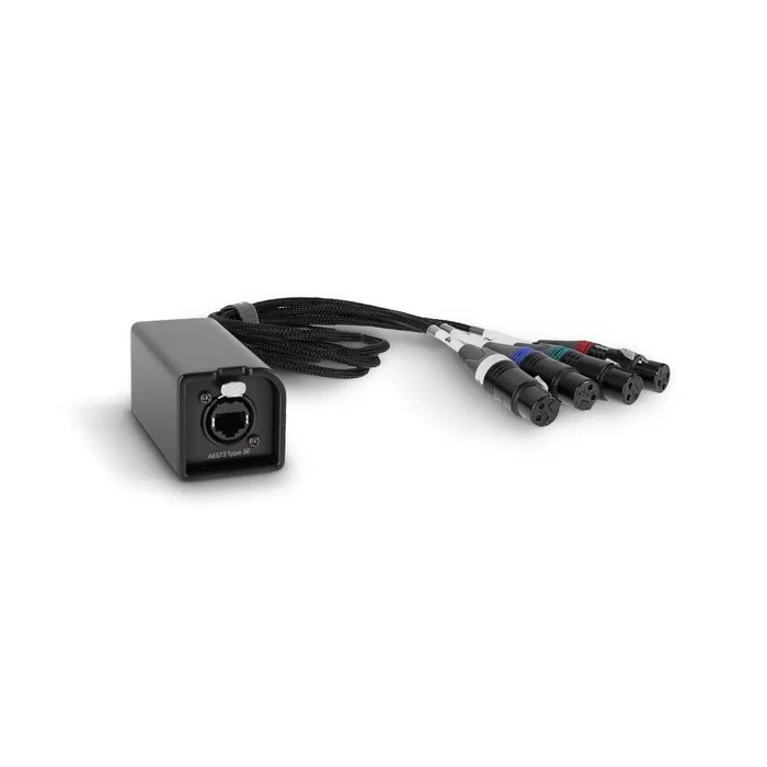 Mit dem Multicore-Adapterkabel P AOC L XLR F können 4 separate, analoge und symmetrische Audiosignale (oder 8 digitale AES3-Signale) über ein Netzwerkkabel (nicht im Lieferumfang enthalten) stabil übertragen werden. Die weiblichen XLR-Stecker sind zur leichteren Erkennbarkeit nummeriert und farblich kodiert. Der Ethercon-Anschluss ist entriegelungsgeschützt, um ein versehentliches Abziehen des Kabels zu verhindern.
