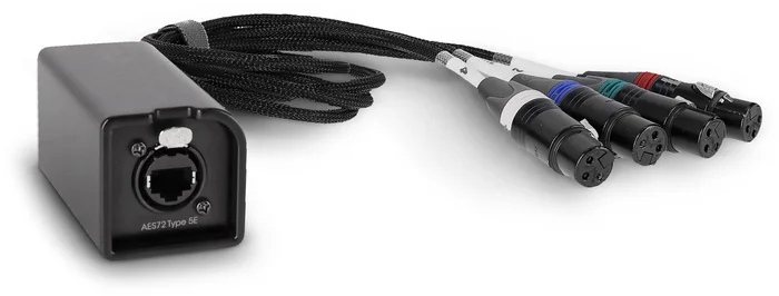 Mit dem Multicore-Adapterkabel P AOC L XLR F können 4 separate, analoge und symmetrische Audiosignale (oder 8 digitale AES3-Signale) über ein Netzwerkkabel (nicht im Lieferumfang enthalten) stabil übertragen werden. Die weiblichen XLR-Stecker sind zur leichteren Erkennbarkeit nummeriert und farblich kodiert. Der Ethercon-Anschluss ist entriegelungsgeschützt, um ein versehentliches Abziehen des Kabels zu verhindern.