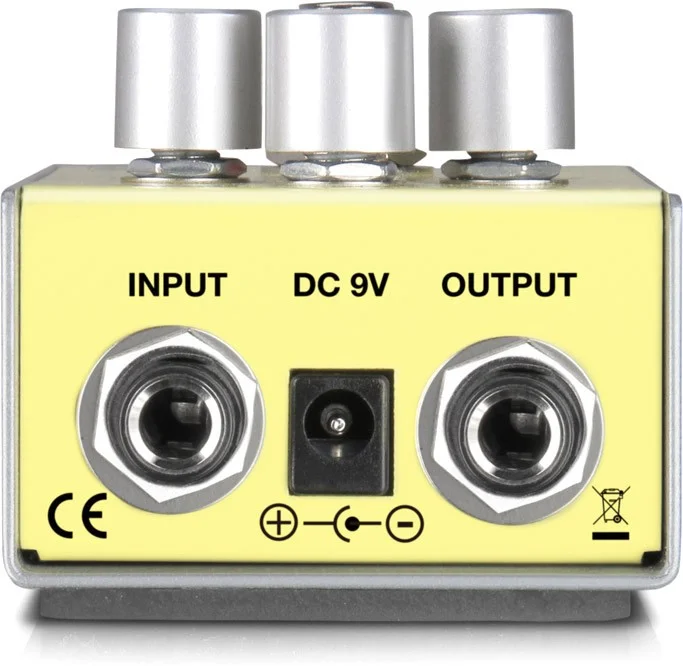 - stabiles Stahlgehäuse, vorgebohrte Löcher auf der Unterseite zur einfachen Montage auf Pedalboards
