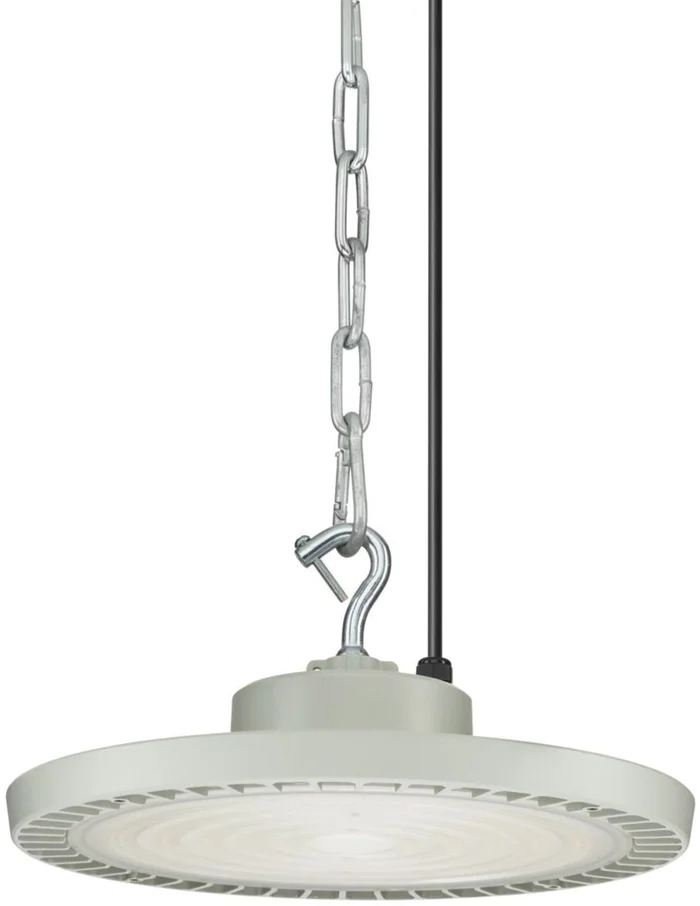 Aluminium-Druckguss, Legierung ADC1 (EN AC-47100), grau, Netzteil (Ein/Aus), 25500 lm, 187 W, 136 lm/W, 4000 K, (0,385, 0,380) SDCM5, breiter Lichtstrahl, matt, Polycarbonat, IP65 | staubdicht, strahlwassergeschützt, IK06 | 1 J, Schutzklasse I, Anschlusseinheit 3-polig