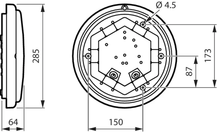 D285 mm, Polycarbonat, Weiß, Signalweiß (RAL9003), Netzteil (Ein/Aus), 1700 lm, 17 W, 95 lm/W, 3000 K, (0,4338, 0,4030)SDCM ≤5, Symmetrisch, Opal, Polycarbonat, IP65 | Staubdicht, strahlwassergeschützt, IK08 | 5 J vandalensicher, Schutzklasse II, 3-poliger Steckverbinder