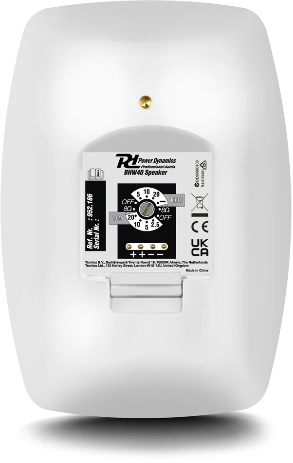 - Leistung der Anzapfungen (70V): 2,5W, 5W, 10W, 20W