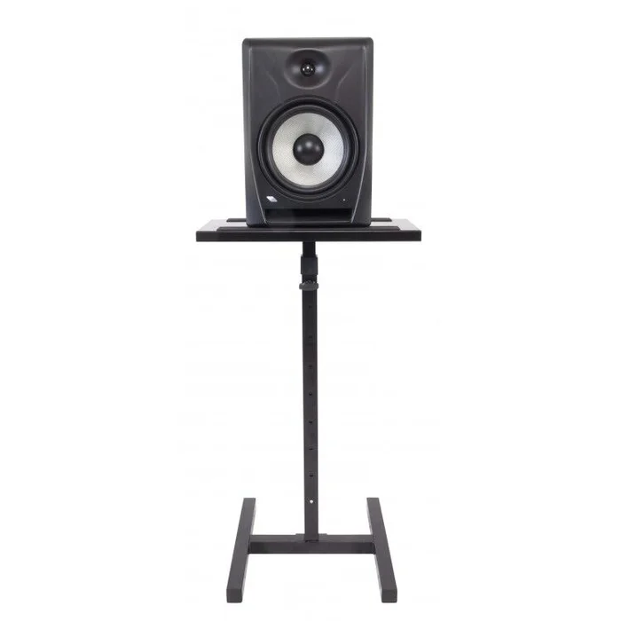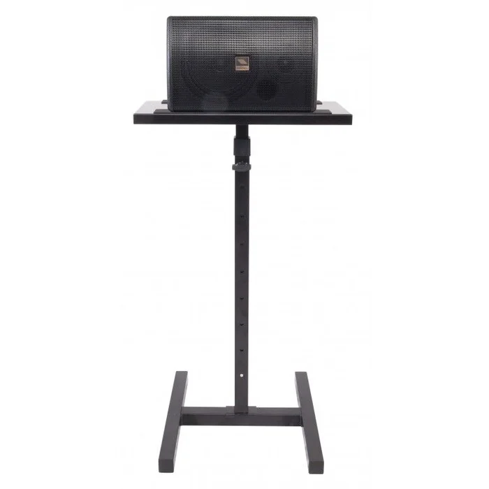 Spezial-Stativ mit Ablage für schwere Studiomonitore bis zu 60kg. Extrem stabil, Höhenverstellung von 83 bis 132 cm. Oberplatte mit schonenden Moosgummi-Streifen versehen, um Kratzern vorzubeugen. Oberes Plattenmaß: 470 x 220 mm. Savelock Verriegelung mit Verschraubung.