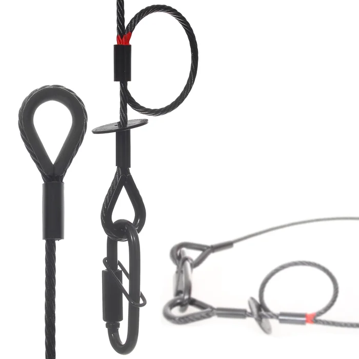 Saveking® Sicherungsseil 40kg, 4mm, 100cm, schwarz, mit Dämpfungselement und Schnellverbindungsglied