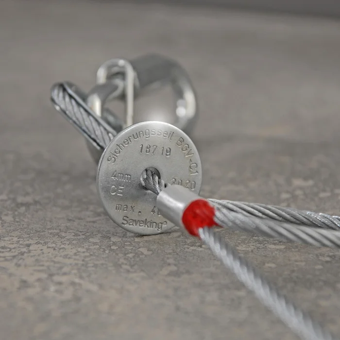 Anders als bei herkömmlichen Sicherungsseilen, findet beim Saveking® Sicherungsseil keine Unterscheidung der Seillänge statt, da die natürliche Dehnung des Drahtseils nicht erreicht wird.
