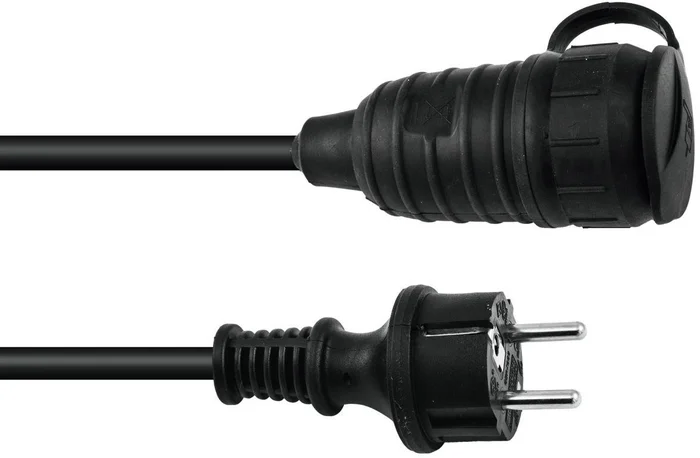 - Schwere Gummischlauchleitung mit anmontiertem Schutzkontakt-Gummistecker und -kupplung