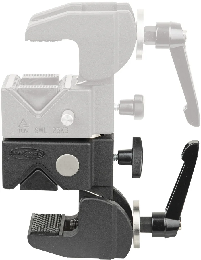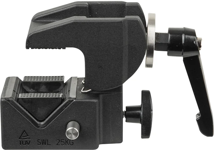 Die Multigrip Clamp ist eine sehr vielseitige Klemme, die verschiedene Montagemöglichkeiten bietet. Diese TÜV-zertifizierte Klemme passt um Objekte wie Rohre oder Balken mit Durchmessern oder Abmessungen von 10mm bis 55mm und hat eine Tragfähigkeit, SWL, von 25kg. Durch die Verbindung von zwei dieser Teile mit dem zusätzlichen Kupfer-Multigrip-Zapfen erhalten Sie sofort eine Drehkupplung. Durch die M4- und M6-Gewinde verfügt die Multigrip Clamp über mehrere Befestigungsmöglichkeiten, was sie perfekt für Unterhaltungs- und sogar Fotografiezwecke geeignet macht.Technische Daten: