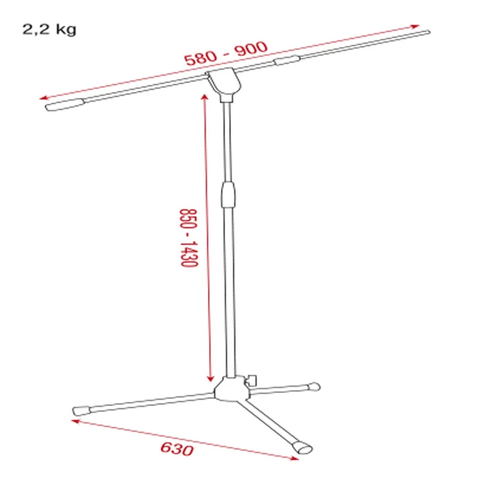 Showgear Microphone Stand – Pro – 850-1430 mm, Basisteil aus Metall