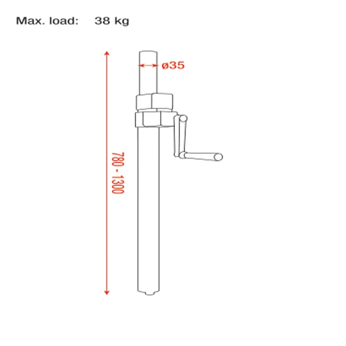 Showgear Windup Speaker Stand – Stahl, 780-1300mm, max. Belastbarkeit 38kg