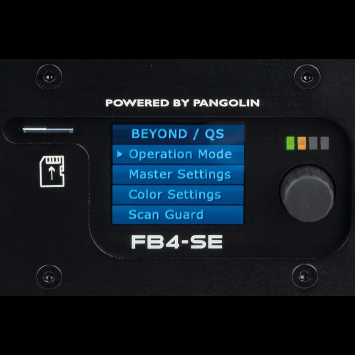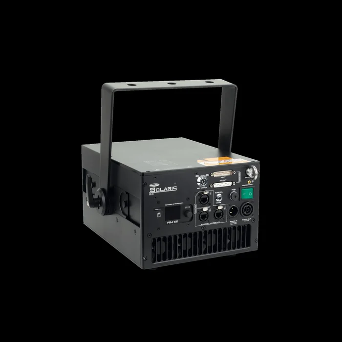 Der Solaris 11.0 ist ein High-Power 11.000-mW-RGB-Laserprojektor mit integriertem Pangolin-FB4-Steuermodul, der für den Einsatz in großen Veranstaltungsräumen vorgesehen ist. Das FB4-Modul schaltet die preisgekrönte QuickShow-Software frei, d. h. Sie können diese professionelle Software völlig kostenlos nutzen. Damit eröffnen sich umfangreiche Möglichkeiten für die professionelle Steuerung von Lasershows. So können Sie Ihre Lasershows in einem vollständigen Netzwerk-Setup laufen lassen, gesteuert von der QuickShow-Software auf Ihrem PC. Sie können ihn auch über Ihr Lichtpult per Art-Net oder ILDA steuern, und er verfügt über eine SD-Kartenschnittstelle zur Speicherung automatischer, eigenständiger Wiedergaben.