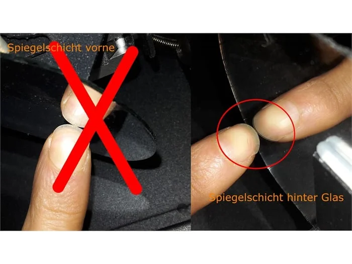 11x8cm Spiegelschicht hinter Glas, Rückseite gedeckt weiß