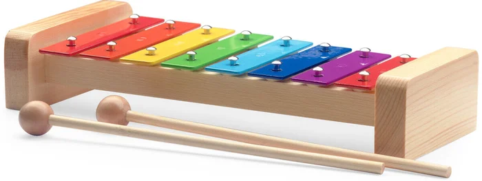 - Metallophon mit 8 farb-kodierten Klangplatten