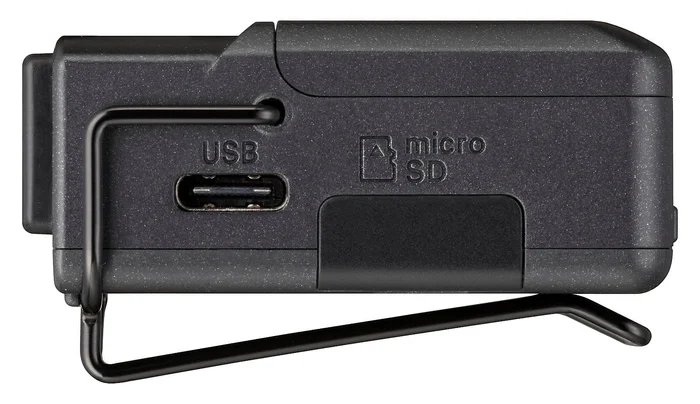 - Stromversorgung: 2 AAA-Zellen (Alkaline-Batterien, NiMH- oder Li-Akkus, separat erhältlich): USB-Verbindung mit einem Computer