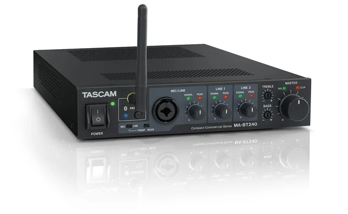 Der MA-BT240 ist ein vielseitiger Mischverstärker, der für die Hintergrundbeschallung sowie für Präsentationen und Durchsagen in kleineren Geschäftsräumen entwickelt wurde.