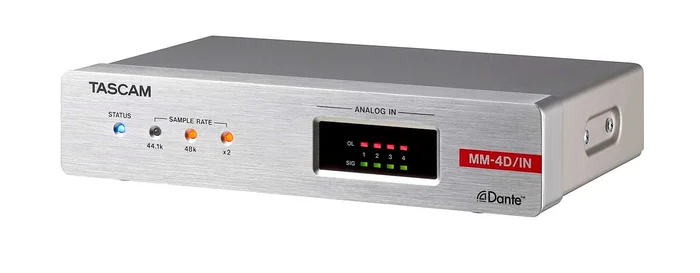 Der MM-4D/IN ist Teil der „Dante Compact Processor Series“ von Tascam, die verschiedene kompakte Audiowandler mit halber Rackbreite für Dante/AES67-Netzwerke umfasst. Die Modelle fügen Dante-Audionetzwerken in öffentlichen Einrichtungen, Rundfunkstationen, Aufnahmestudios oder exklusiven Wohnumgebungen problemlos zusätzliche Eingänge und Ausgänge für Mikrofon/Line- oder AES/EBU-Signale hinzu und können beliebig kombiniert werden.