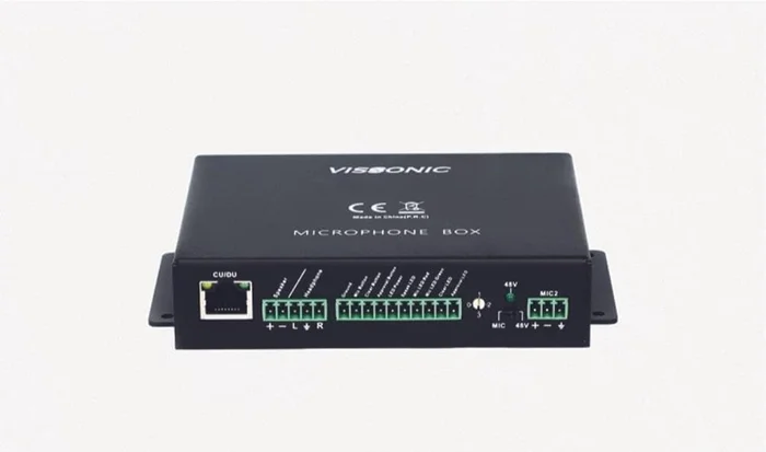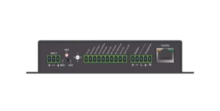 - Ein CAT5e Netzwerkkabel überträgt 64 Audiokanäle und zusätzliche Steuerinformationen.