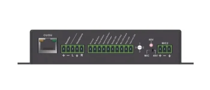 - „OVERRIDE“ Mode: Bei Betätigung der Sprechtaste an einer Sprechstelle wird das Mikrofon aktiviert. Gleichzeitig wird die davor aktive Sprechstelle deaktiviert.