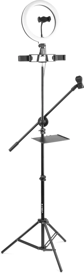 Das RL25 Ring Light Kit verfügt über einen 10-Zoll breiten Ring aus energiesparenden LEDs mit hoher Farbwiedergabe. Dies ist ein perfektes Werkzeug, um mehr Licht in einen Innen-/Außen-Videodreh, eine Live-Show, Modefotografie, Make-up-Tutorials, YouTubing, Vlogging, etc. zu bringen. Mit Controller, wählen Sie aus drei verschiedenen Lichtmodi weiß, warm und natürlich und 10 Stufen der einstellbaren Helligkeit, um Ihre verschiedenen Fotografie Licht Bedürfnisse zu erfüllen. Die Smartphone-Halterungen sind mit den meisten auf dem Markt erhältlichen Smartphones kompatibel. Die RL25 Ringlampe ist mit jedem USB-Ladeanschluss von z.B. Laptop, PC, Powerbank, Handy-Ladegerät, Wandladegerät, etc. kompatibel.